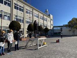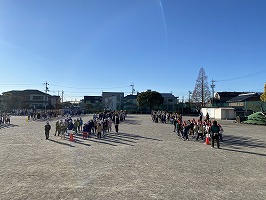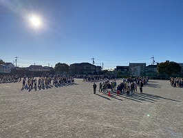 今日は1時間目になわとび集会が控えていたので、グラウンドにて青空朝礼を行いました。つい最近、大寒だったとは思えないほどの暖かな陽気でした。しっかりと春は近づいているのですね。