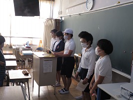 第2回学校運営協議会を開催しました。今回は、委員の方々に授業の様子を見ていただいたり、6月以降の学校の活動状況を説明したりしました。子ども達が落ち着いて学習に取り組む様子、出前授業で外部の方のお話を熱心に聞いている様子などを見ていただきました。また、廊下に掲示してある子ども達の作品にも足を止め、お褒めの言葉をいただきました。学校の現状と課題を共有しながら、子ども達のために支えてくださる方々がたくさんいることを改めて感じ、協力し合っていきたいと思いました。