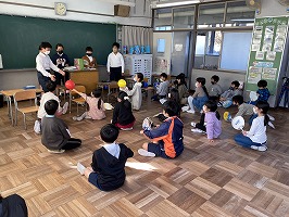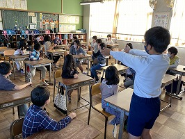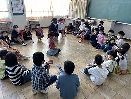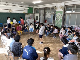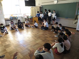 5時間目に今年度初の青空集会を行いました。全校児童が縦割りの12グループに分かれ、自己紹介やアイスブレイクのためのゲームを行いました。6年生の児童を中心にどのグループも楽しく過ごすことができました。