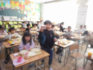 「明日から冬休み」ということで、朝礼では、休まず学校に来たことをほめるとともに、それぞれにがんばったことと残念だったことを少し振り返ってみました。また、事故や事件にまきこまれないように、安全に過ごすためのお話も聞きました。また、今日の給食は、カラフルピラフ、ローストチキン、オニオンスープ、イチゴとチョコが選べるセレクトケーキというメニューだったので、クリスマス気分を楽しみながら、おいしくいただくことができたようです。