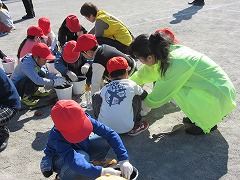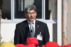開会式では、校長先生、教育長先生、人権擁護委員の代表の方からお話を聞き、球根贈呈が行われ、ゆり、チューリップの球根植え付けを行いました。児童の皆さんは、人権擁護委員の方に植え方を教えていただきながら、楽しく球根の植え付けを行いました。