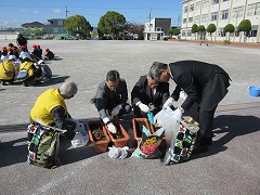 11月1日に、人権の花運動として、1年生がチューリップの球根を植えました。