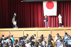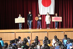11月26日の朝礼では、校長先生からチャレンジ持久走、チャレンジタイムについて「走ることで体が鍛えられ、自分の力を伸ばすことができること」や「持久走大会当日に力を発揮するために、チャレンジタイムや体育の授業が大事になること」等、話がありました。また、12月1日に開催される愛知駅伝についての話もありました。