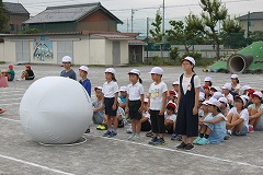 朝の学習の時間に、大玉送りの練習をしました。連日の猛暑に比べ、比較的気温が低く、風もあって心地よい環境でした。