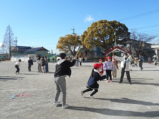 2月4日(水)のなわとび集会に向けて、縄跳びの練習をがんばっています。短縄の部は、2分間の前跳びの合計回数で競います。2分間流れる音楽に合わせて、友達と一緒に練習していました。大繩跳の部はクラス対抗なので、クラスみんなで練習したり、自主的に集まって練習したりしていました。本番だけでなく休み時間にも、体育委員が1・2年生のために大縄を回してくれています。跳びやすいように大きく回してあげたり、「よいしょ」と跳ぶタイミングの声掛けをしてくれたりしていました。練習の成果もあって「先生、跳べるようになったよ」と笑顔で報告してくれる子もいて嬉しくなりました。