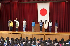 4月16日の朝礼では、委員会委員長と前期学級委員の認証がありました。