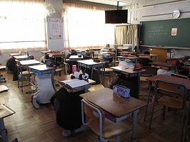 1月17日(火)にショート避難訓練を行いました。今回のねらいは、「緊急地震速報」について知ることと、それを聞いたときに自分を守る行動をとることです。いつ行うかを知らせずに行いましたが、緊急地震速報のチャイム音を聞いたとたんに、子どもたちは机の下にもぐるなど、自分で考えて行動することができました。
