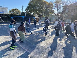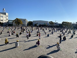 大縄では、3分間に何回跳べるかを競いました。低学年はOの字跳び、中・高学年は8の字跳びをしました。