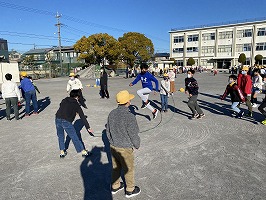 短縄では、30秒間で何人が跳び続けられるのか競いました。低学年は後ろ跳び、中学年はあや跳び、高学年は二重跳びをしました。