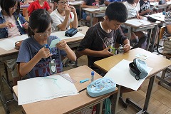 3年生の理科では、太陽を直接見ると目をいためてしまうので、遮光板という道具を使うと観察できることを知りました。子ども達は、遮光板を通して見た太陽がまん丸であることや、オレンジに輝いていること、思ったより小さく見えることなどを友達同士で話しながらとても楽しそうに観察していました。「理科は実験や観察があるから楽しい!」と話している子もいました。これから太陽の向きとかげのでき方についても学んでいきます。
