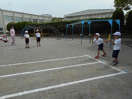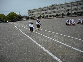 5月25日(火)と26日(水)に体力テストを行いました。1年生は、ソフトボール投げ、50m走、立ち幅跳びをしました。50m走では、力強くスタートする子もいればとなりの子をみながら走る子もいて、1年生ならではの光景が見られました。ソフトボール投げでは、初めてもつソフトボールの感触に戸惑いながらも、めいいっぱい遠くに投げました。
