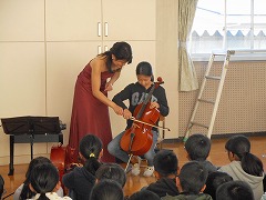 11月13日(火)2・3・4時限目に、バイオリン・チェロ鑑賞会がありました。「トトロ」「カントリーロード」等、子ども達が知っている曲の演奏もあり、実際に楽器に触れ合う体験ました。生の音楽に触れることで、とても楽しい時間を過ごすことができました。