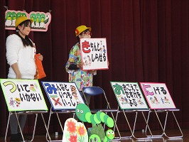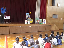 愛知県警 防犯活動専門チーム「のぞみ」による防犯教室を行いました。劇やクイズを通して、自分の身を守るための具体的な行動の仕方を教えていただきました。