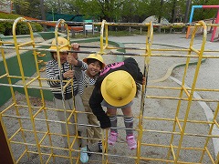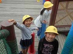 アスレチックでは、決まりを守って滑り台やターザンロープなどをし、友達と仲良く楽しく遊ぶことができました。