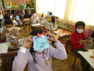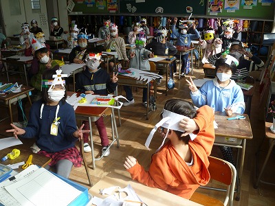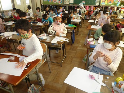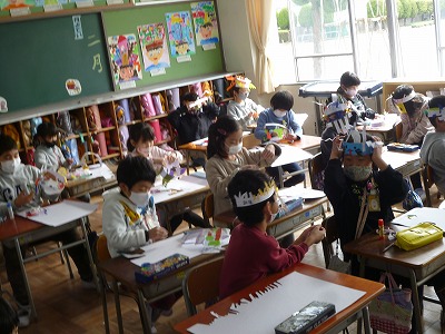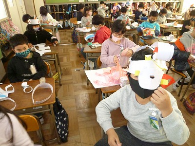 図画工作科の授業で、「わっかでへんしん」の学習を行いました。