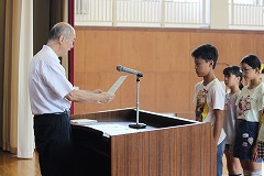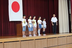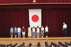 6月25日の朝礼では、体力テストでA判定の児童の表彰がありました。