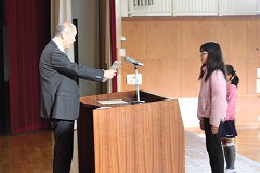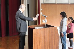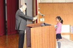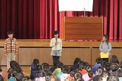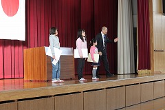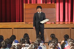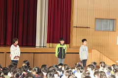 次に、2年、4年、6年の代表児童による「2学期に頑張ったことや3学期に頑張りたいこと」の発表がありました。全校の前で緊張しながら、自分が頑張ったことを伝えることができました。