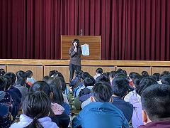 講話では、給食担当の先生が、給食だよりに『全国郷土料理の日』のコーナーがあることを紹介してくださいました。10月は鳥取県、11月は愛知県、12月は富山県の郷土料理が給食の献立で登場します。自分の地域の料理との共通点や相違点を考えながら食べるとおもしろいかもしれません。あま市にいながら、日本全国のおいしいもの巡りができるというわけですね。
