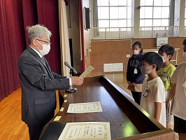 朝礼では、後期児童会役員の認証式を行いました。新たな篠田小学校のリーダーとしての活躍を期待しています。