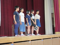 児童会の児童から、寸劇で緑の羽根募金の呼びかけがありました。緑を増やしていくことに使われるお金です。ご協力、よろしくお願いします。