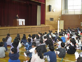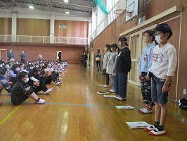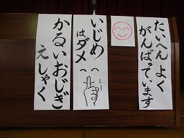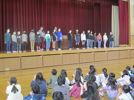 2 校長先生のお話「ほめるところがたくさんありすぎて、困っています!」【始業式の雨の日の下校】 先生たちは、新6年生の力と2~5年生の昨年の経験を信頼しました。よく応えてくれました。【1年生を迎える会 大成功】 児童会役員の人たちがよく頑張りました。楽しいクイズ、素晴らしい歌声の校歌のプレゼント。頑張ってくれた児童会の人たちに拍手を。【いじめについて】 人の傷つく言葉がけや行いをしないように心掛けている子が多いようですね。また、してしまってもすぐに謝っているということを聞いています。困ったことをお家の人や先生に相談して解決している人もいます。これからも、人を傷付ける言い方や行動から自分も周りも守り合っていきましょう。【軽い会釈ができる】 目と目が合ったときに、軽いお辞儀ができていますね。これを「会釈」と言います。とても感じが良い行いです。篠田っ子の良さとして続けていきたいですね。 みんなで、「かしこく」「やさしく」「たくましく」楽しい篠田小学校にしていきましょう。3 週番の先生のお話 今週のめあては「あいさつをきちんとしよう」です。あいさつをする人が増えていますが、自分からあいさつができるように心掛けていきましょう。