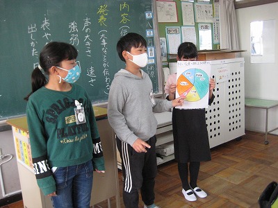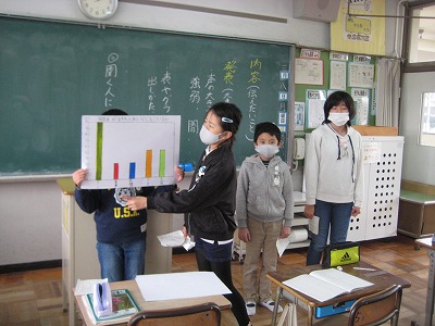 その結果から、グループごとに資料を作り、クラスのみんなに発表しました。