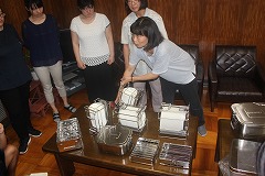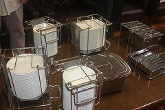 放課後、新しい食器や食器かごの使用方法を職員で学びました。児童のとまどいが少なく、スムーズな配膳を行うためにはどうするばよいか、実際に現物に触れながら考えることができました。