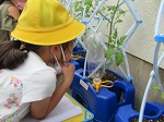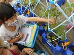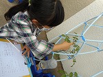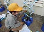 国語「かんさつ名人になろう」では、育てているミニトマトを観察しました。算数「長さ」で学習したものさしを使って茎や葉の長さを測っていました。色やにおい、触感にも着目して、メモをしていました。