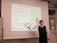 2月4日に、大治町教育委員会主幹である森本恵作先生をお迎えして、外国語活動研修会を行いました。実際に英語を使い話しながら、既習語句や表現を繰り返し活用することや対話の続け方等について学びました。「外国語活動のこれまでとこれから」を知るとともに、互いに研修を深めることができました。