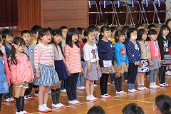 対面式では、児童会長が新1年生の前に立ち、あいさつを述べました。これから、よろしくお願いします!!