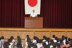 7月9日(月)の朝礼では、校長先生から交通安全の話を聞きました。