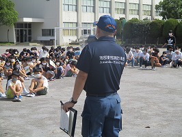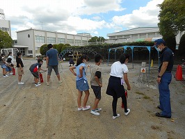 その後、4年生は「水消火器体験」を、6年生は「救助袋体験」を行いました。それぞれ初めての体験でしたが、防災に対する意識も高まったことと思います。また、ご家庭でも防災について話題にしていただけると有り難いです。