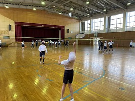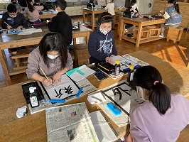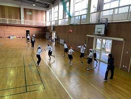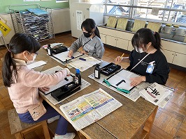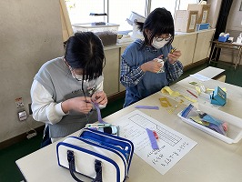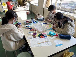 6年生は家庭科でナップザック作りをしています。今日は、ひもを通す部分を折り曲げてまち針で止め、しつけ縫いをしていました。下の布を一緒に縫ってしまわないように気をつけながら縫うことや玉止め・玉結びに苦戦していましたが、慎重に自分のペースで作業を進めていました。しつけ縫いができ上がった人からミシンで縫います。まち針で止める時に布を押さえてあげたり、わからない所は確認し合ったりと助け合う姿が見られ、良い雰囲気で集中して作品作りができました。