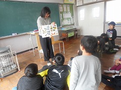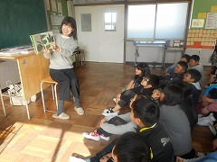 1月17日、4年生が勅使川原先生に、図書指導をしていただきました。