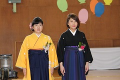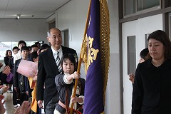 卒業生入場では、1組、2組の担任の後に続き、2列で入場しました。入場する表情からは、いよいよ卒業という気持ちからか、どの児童も真剣さが伝わってきました。