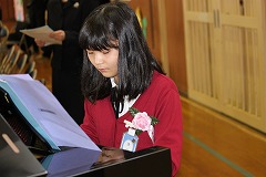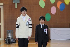 別れの言葉では、呼びかけの言葉で、6年間の思い出を振り返るとともに、周りの方々への感謝の気持ちを述べました。また、学習発表会で歌った「あなたへ」、「仰げば尊し」「校歌」「旅立ちの日に」の4曲を歌いました。練習の成果を発揮し、堂々と自分の言葉を話し、迫力がある歌声が体育館に響き渡りました。