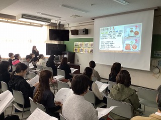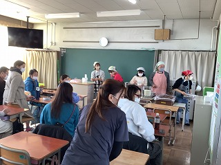 栄養教諭の講話の後、給食を食べていただき、そのあと、子どもたちの給食の様子を見ていただきました。