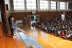 朝の見守り活動の一環で、交通安全協会の方、警察署の方々が来校し、パトカーや白バイを子どもたちに見せてくださいました。せっかくの機会なので、パトカーや白バイに乗ってもよいといっていただき、子ども達は大喜び、長い列ができました。3年生は、警察署の仕事を社会科で学習するので、間近に見ることができ、とても良い体験となりました。登下校の際、見守りやパトロールをしてくださっている方がいることを知る機会にもなりました。