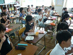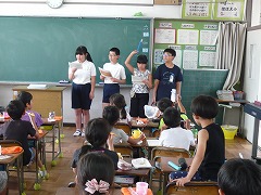 給食後の時間を利用して、歯磨き教室が行われました。保健委員会の児童が、1、2年生の教室へ行き、歯の模型と歯ブラシを使って、歯磨きの大切さや正しい歯の磨き方を教えることができました。