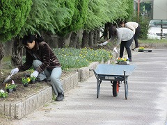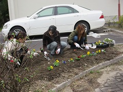 10月24日(火)9時より、PTA研修園芸委員の皆さんで学校花壇の苗植えをしました。パンジー、ビオラ、デージーなどいろいろな花の苗を花壇に植えました。チューリップの球根も植えました。春にたくさんのチューリップが咲くのが、楽しみですね。