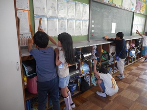 2年生の算数では、長さの学習をしています。㎝や㎜の単位や竹ものさしの使い方、長さの測り方の学習をしてきました。今日は、10㎝チャレンジで10㎝がどのくらいの長さかをつかんだ後に、測りたい物を3つ決めて長さを測りました。長さのおおよその感じをつかむために、測る前に予想を立ててから測りました。「1㎜違いだった。」「もっと測りたい」と意欲的に取り組んでいました。