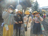 2年生は、今年度2回目の町探検に出かけました。今回は学校の北側を回りました。柿やみかん、どんぐりなど、いろいろな秋を見つけました。白山神社では、どんぐりやいちょうなどを拾って、とっても嬉しそうでした。