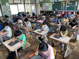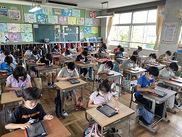 社会の都道府県名の学習において、タブレットを活用しました。「日本地図パズル」というアプリを使って、47都道府県の場所を確認しました。「大分はどこだっけ?」「愛媛は四国かな?」と、迷いながらも何度も挑戦していました。