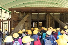 まず、海津市歴史民俗資料館へ行きました。展示してある物をじっくり見て、それが昔どのように使われていたのかについての説明を必死にメモしている様子が見られました。中には、施設の方に質問をしている児童もいました。