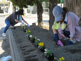 PTA 花壇の苗植え作業