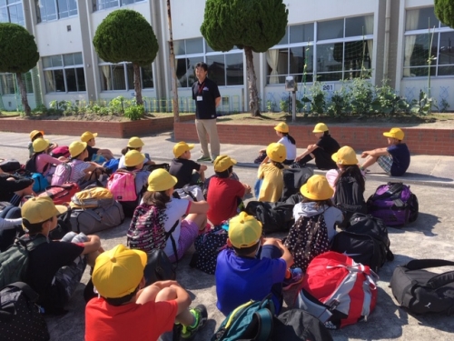 6年生の国語では、目的や条件に応じて話し合うことをねらいに学習しています。今回は、「1年生とみんなで楽しく過ごすためにどうしたらよいだろう 」というテーマで話し合い、グループごとに1年生に喜んでもらえるような遊びを考えました。転がしドッジや空気砲、動く的あてゲームなど、工夫をこらした遊び道具がたくさん並びました。説明する時にしゃがんで説明したり、的に命中したら「すごい」とほめてあげたりと、1年生のことを考えて進めているのを見て、「さすが6年生だな」と感心しました。今日は、6年生と1年生の1組が交流しましたが、6年2組と1年2組は水曜日に交流する予定です。