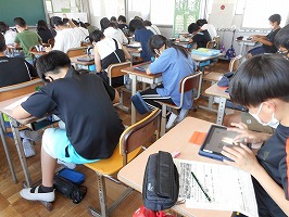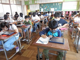 6年生の社会の授業の様子です。社会科の授業では、タブレットを使いながら学習をしています。今日の授業では、法隆寺の位置や外観をGoogle Earthを使って確認したり、聖徳太子について調べ学習をしたりしました。自分で調べることによって、より理解が深まりますね!