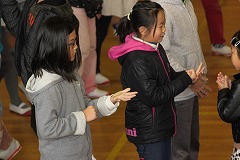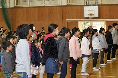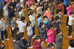児童会会長はサンタクロースの格好をし、役員は最近流行の曲のダンスの仕方を丁寧に教えるなど、一生懸命頑張ることができました。寒さを吹き飛ばすような温かくて笑顔があふれる集会になりました。
