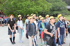 二日目は奈良方面に出かけました。最初の見学地は東大寺です。あいにくの雨模様となりましたが、子どもたちは、大仏の大きさに圧倒され、興味深く見学をしていました。その後グループ行動では、鹿とふれ合い、奈良公園・二月堂などを散策ました。 最後の見学地は法隆寺です。雨も小降りとなり、五重塔や夢殿など、歴史的な建築物をじっくりと見学することができました。 解散式では、代表に児童が修学旅行の思い出とこれからの決意を語りました。どの児童もとても満足そうな顔をしていました。この二日間を通して、子どもたちはたくさんのことを学び、成長することができたと思います。これからの学校生活で、修学旅行で学んだことをぜひ生かしていってほしいと思います。 【東大寺・奈良公園】