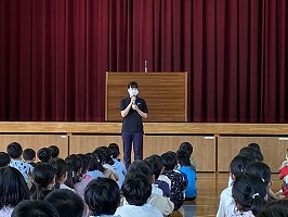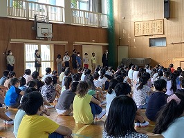 緊急事態宣言が解除され、久しぶりに全校児童がそろっての朝礼となりました。やはり、みんながそろっての朝礼は気持ちがよいです!!あたりまえだった日常があたりまえではなく、実はとても幸せなことなんだなと再確認できた時間でした。